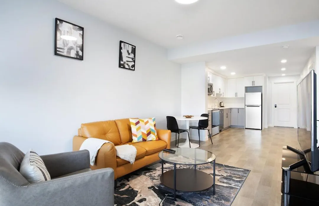 There are an oven and a dishwasher provided in an equipped kitchen. This apartment is 25 minutes' drive from Calgary International airport and within 20 km of Downtown- West Kerby C train station.